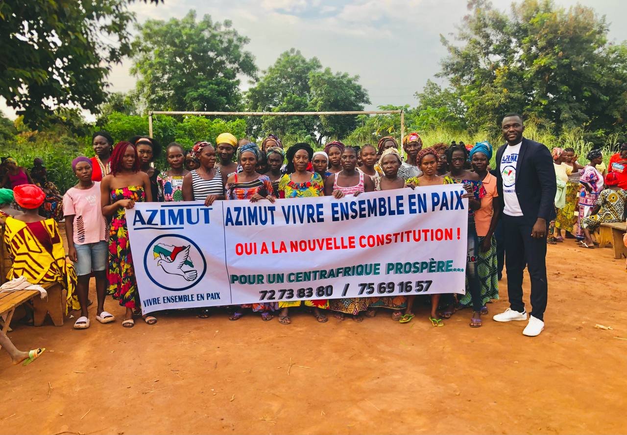 Dans la commune de Bimbo 2 Les femmes de la commune de Bimbo 2 ( quartiers Gbabili, Avicom, et Basse kotto) toutes membres de l’ONG AZIMUT appellent le peuple Centrafricain, à voter massivement «OUI» pour doter la RCA d’une nouvelle Constitution pour le bien être de la population et le développement de Centrafrique.